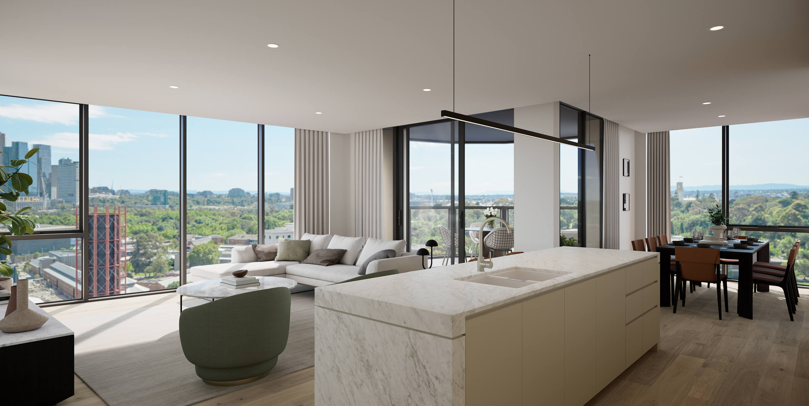 Spanning 18 levels, Aria Melbourne boasts uninterrupted views across Melbourne CBD and Royal Botanic Gardens offering an exquisite collection of two and three bedroom apartments.