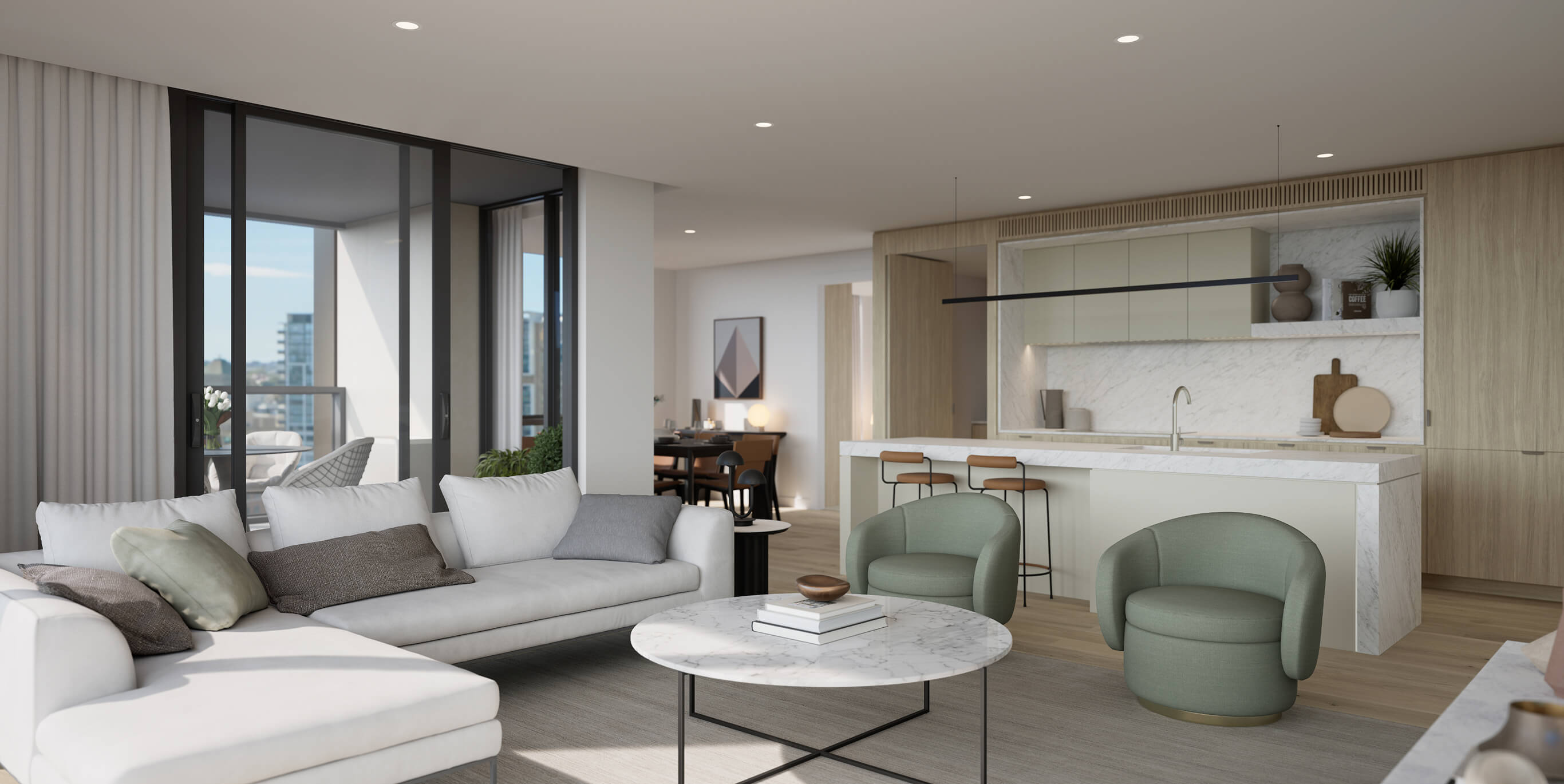ARTIST IMPRESSION – LIVING & KITCHEN, Light Plus Scheme